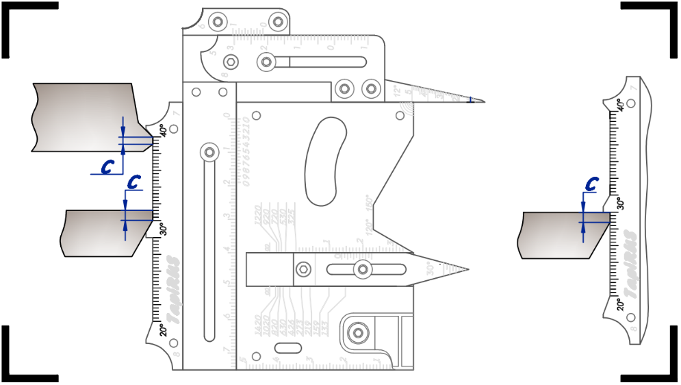 - Attach a gauge corresponding to the type of measured groove at the edge of the face prepared for welding