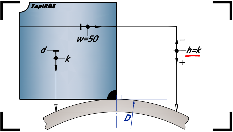 ●    Снимите показание параметра h - по вертикальной шкале H или показание параметра k - по вертикальной шкале K (см. схему)
